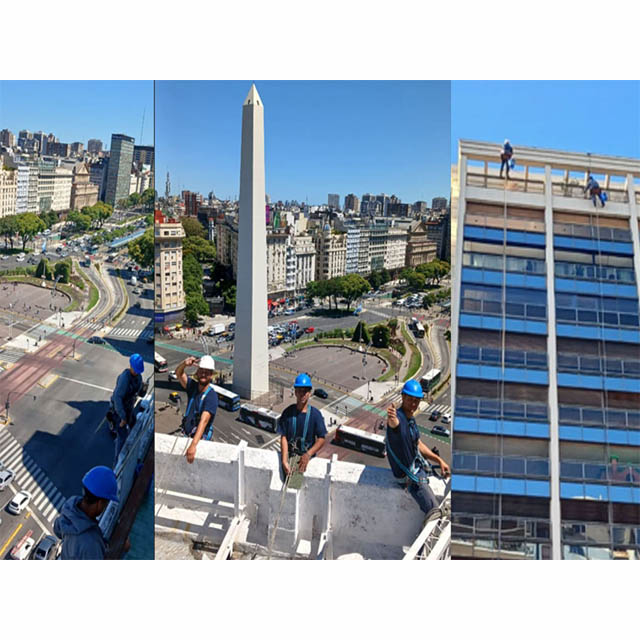 Realizamos todo tipo de trabajos de altura: desde limpieza e hidrolavado hasta pintura, impermeabilización y albañilería para edificios o constructoras.