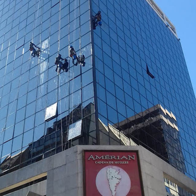 Realizamos trabajos de LIMPIEZA DE VIDRIOS EN ALTURA y en superficies de difícil acceso. Planificamos el proceso implementando las medidas y condiciones de seguridad adecuadas.