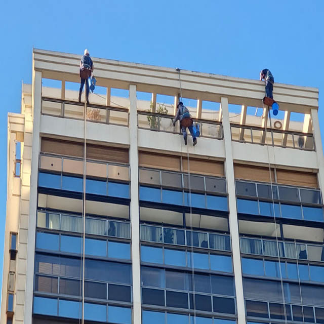 Realizamos todo tipo de trabajos de altura: desde limpieza e hidrolavado hasta pintura, impermeabilización y albañilería para edificios o constructoras.