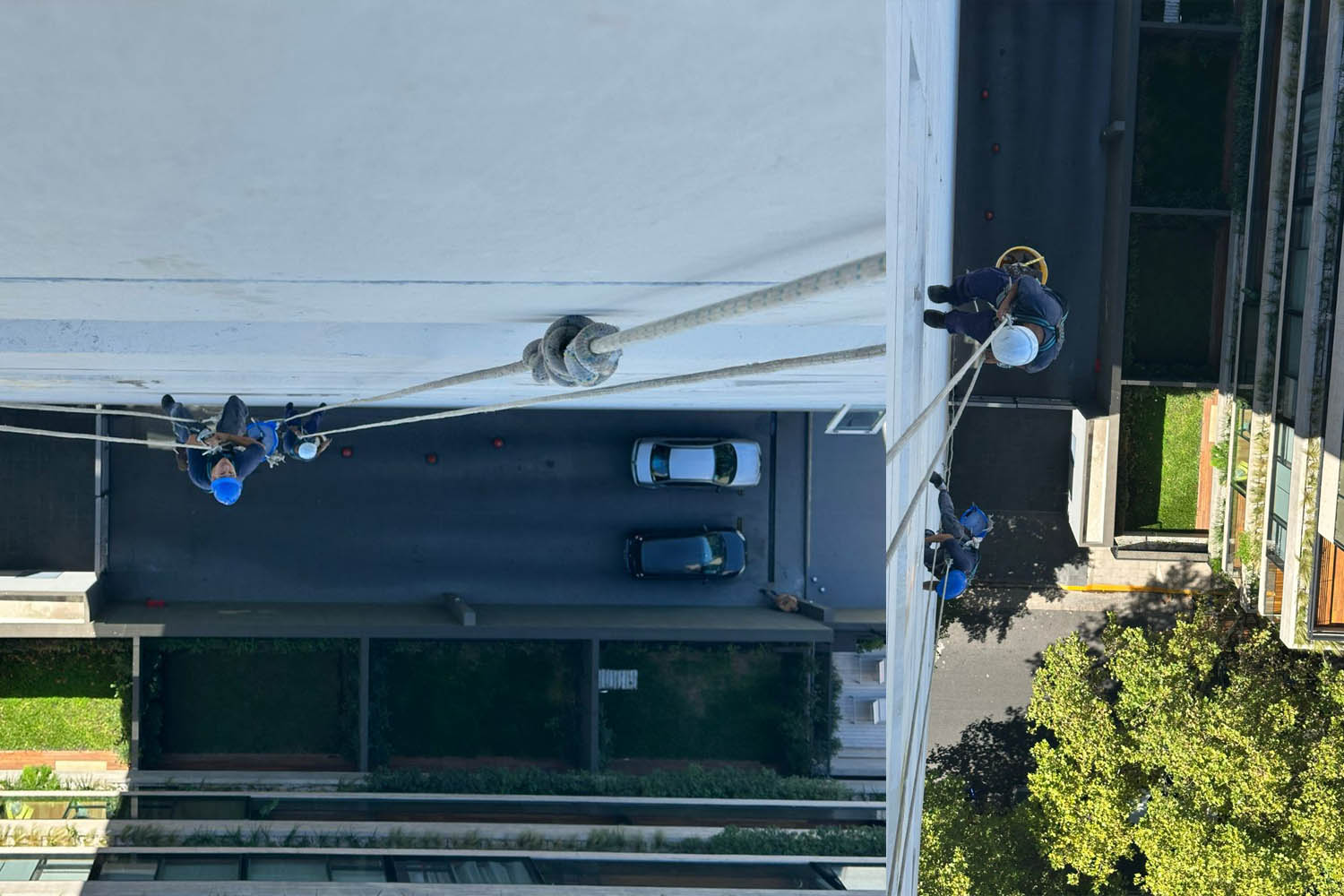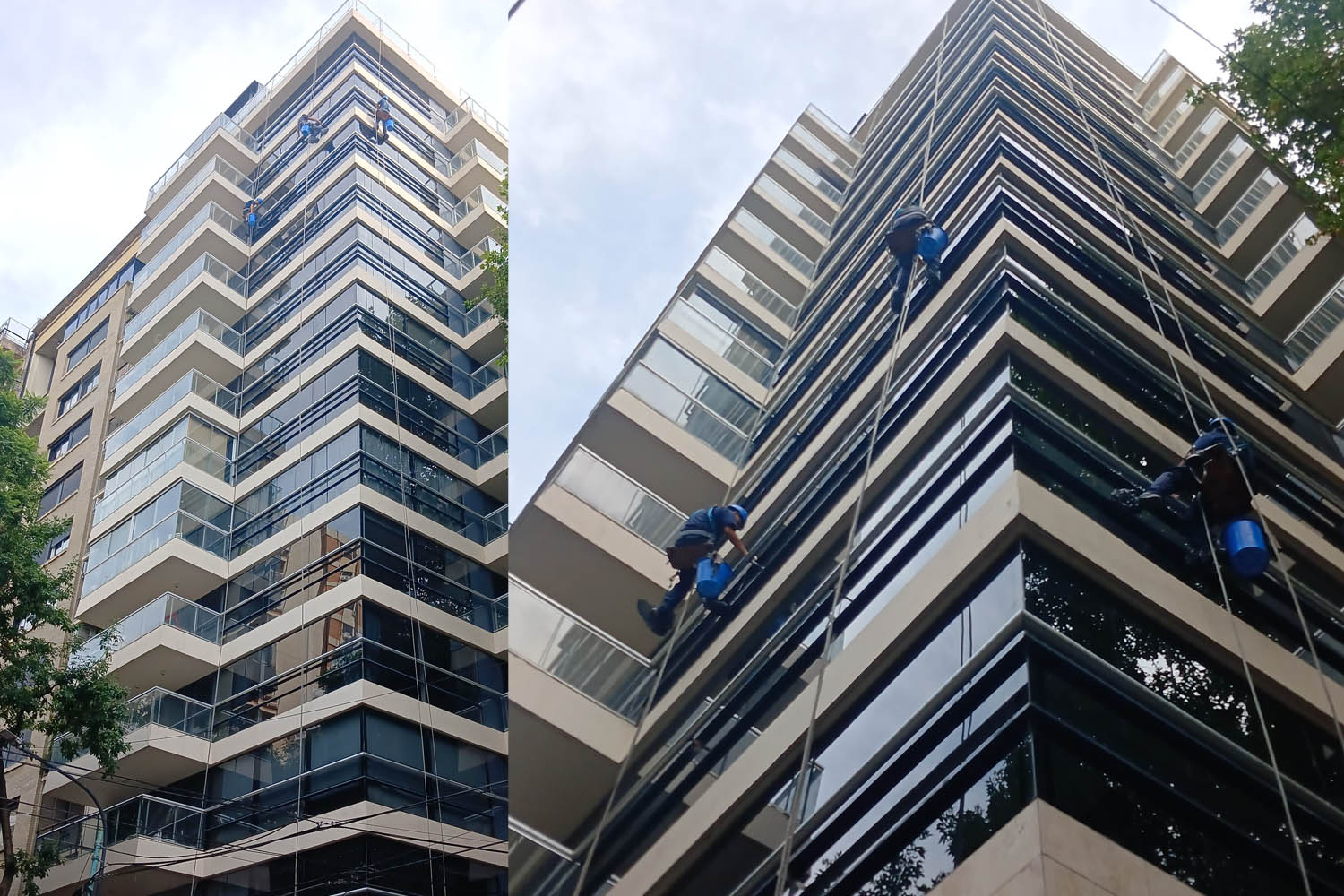 Nos especializamos en impermeabilización profesional de frentes y fachadas en altura, utilizando técnicas de acceso por cuerdas, aplicamos recubrimientos impermeables de alta resistencia que protegen las superficies contra filtraciones de agua, humedad, grietas y desgaste ambiental, trabajamos con materiales de primera línea.